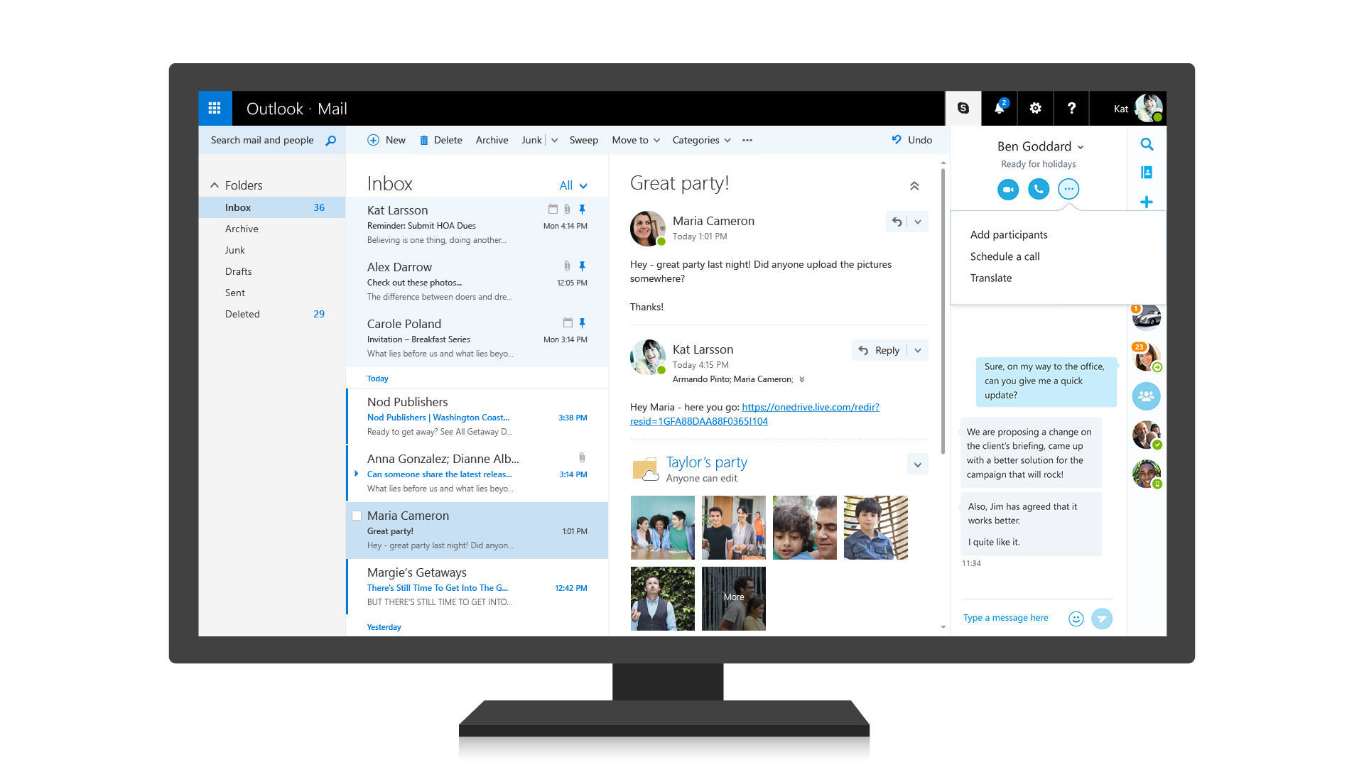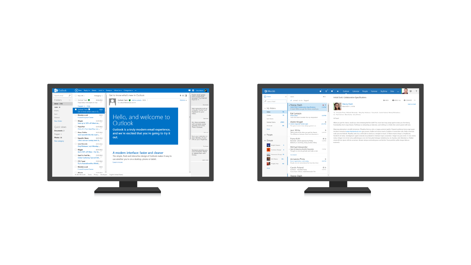 Here are some examples of this journey to a single web-based Outlook experience for all user segments.